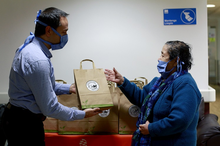 “Particularmente estamos entregando un kit sanitario, que consisten en 250 cc de alcohol gel, dos mascarillas reutilizables y guantes quirúrgicos como medida preventiva primaria, para que puedan ser entregadas a las personas más vulnerables”, afirmó Hernán Rebolledo, representante de Salmón Chile.